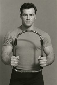 Klassieke bodybuildingadvertentie uit de jaren 70, vorige eeuw… bodybuilder met bullworker, buigstang of trekveren en de belofte van 5 minuten per dag werken met dit thuistrainingsgereedschap en binnen een paar maanden kent je eigen moeder je niet meer. Moeten we nu om lachen en geen sukkel die daar nog intrapt. Maar zit er niet toch een kern van waarheid in of blijft het een loze belofte. Toch even lezen, je weet maar nooit.